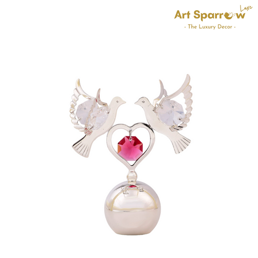 Silver Couple Dove Heart with Crystal Decor Showpiece