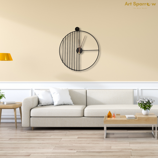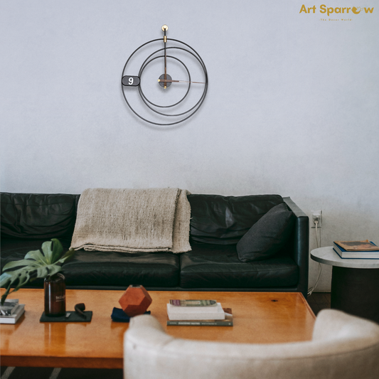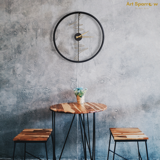 Blck and Golden Touch Large Silent Wall Clock by Art Sparrow