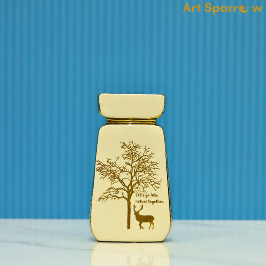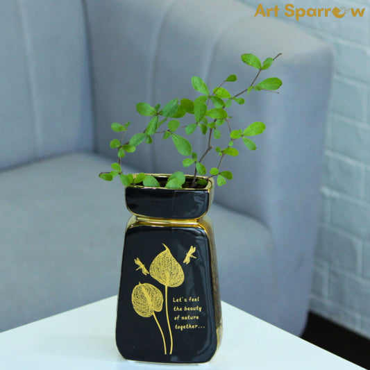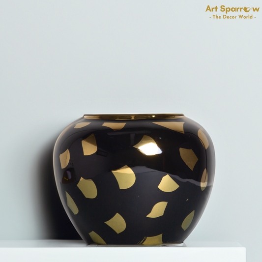Black Diamond Vase with Ceramic Gold Glossy Finish