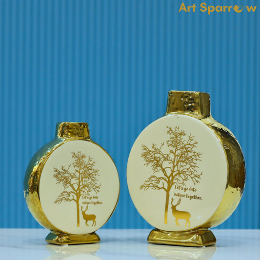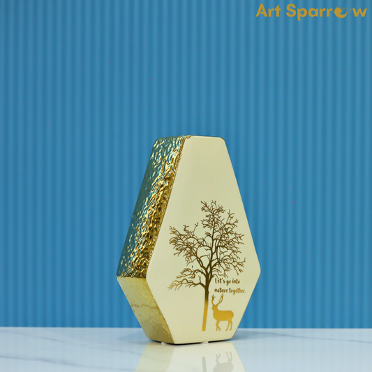 White Diamond Vase with Ceramic Gold Glossy Finish