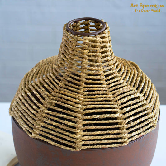 Jute & Metal Round Shaped Flower Decor Vase - Brown (set of 2)
