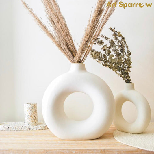 Donut Table Vase Polyresin White (Set of 2)