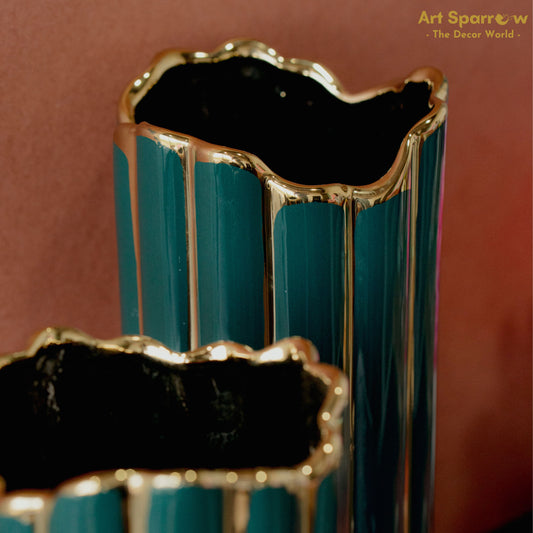 Flower Vase Decorative Cylindrical Wave (set of 2)