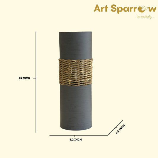 Jute & Metal Round Shaped Flower Vase for Decor - Grey (set of 2)