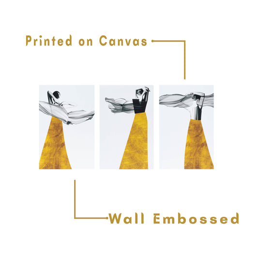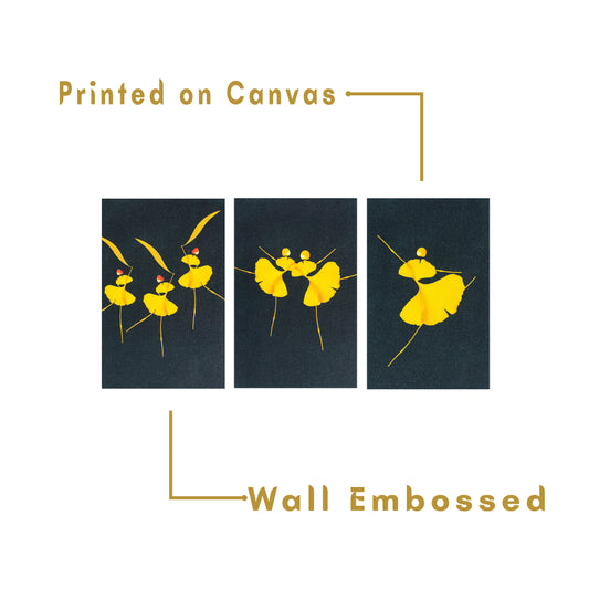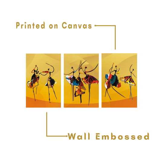 Dancing Theme Abstract Premium Trio Canvas Painting Yellow (Set of 3)